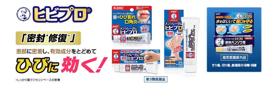 除了液體絆創膏之外,本系列還有治療手部皸裂傷口的Hibi Pro軟膏(メンソレータム ヒビプロ),治療腳跟、手腕、膝蓋等皸裂傷口的Hibi Pro KT軟膏(メンソレータム ヒビプロKT),以及治療唇部皸裂傷口的Hibi Pro LP軟膏(メンソレータム ヒビプロLP)。