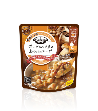 3種のきのことバターが調和したコク深い味わい。オーガニック豆のスープ