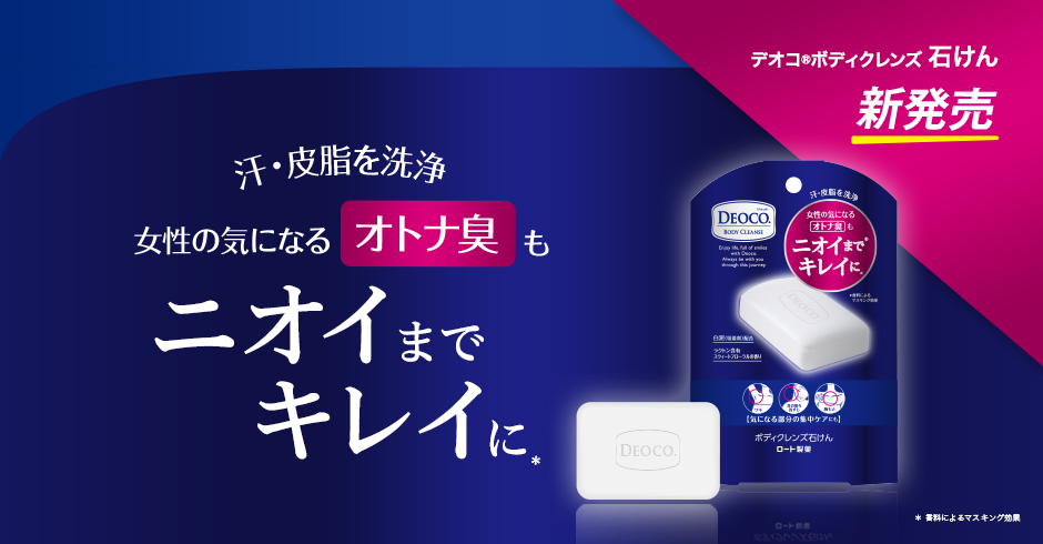 ロート薬用ボディソープLL医薬部外品 ニオイのメカニズムを解明し、 女性のためのアプローチを追求して完成した 薬用ボディソープ「デオコ®」。