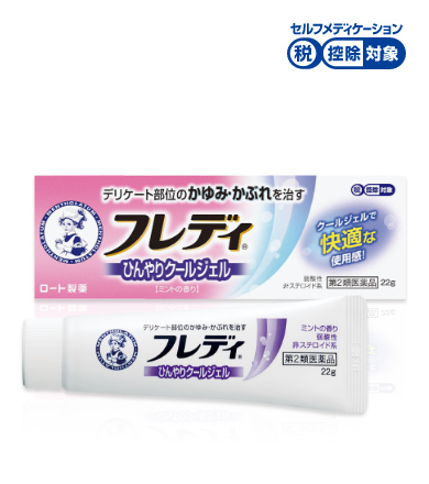 「メンソレータム フレディ メディカルジェルn」は、生理用品などによるデリケートな部分のかゆみ・かぶれを抑える、お肌にやさしい弱酸性&非ステロイド処方の鎮痒消炎薬。5種類の有効成分を配合し、不快な症状を素早く鎮めて治します。ムレてつらいかゆみにも気持ちいい、ひんやりクールなジェルタイプ。すっきりと爽やかなミントの香りです。