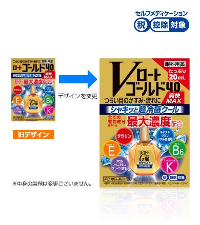 「Vロートゴールド40爽快MAX」は、中高年の目の悩みに着目した目薬です。タウリンなど6種全ての有効成分を基準