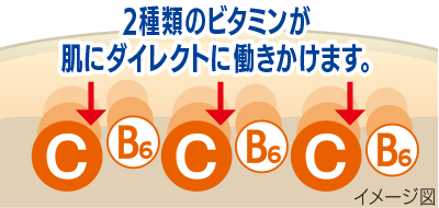 Wのビタミン有効成分を配合。 一般的には壊れやすく不安定なピュアビタミンC※1を、 ロート製薬の長年の研究により安定して配合することに成功しました。 このビタミンCそのものであるピュアビタミンC※1が ぐんぐん角層の奥まで浸透します。