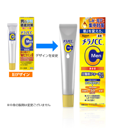 「メラノCC Men 薬用しみ集中対策美容液」は、皮脂肌を考えた独自の処方設計。有効成分としてWビタミン「ピュアビタミンC(抗酸化成分)