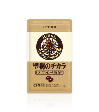 レスベラトロール類を豊富に含んだ「聖樹のチカラ」は、エイジングケアをサポートするために、ロート製薬独自の研究により開発された通信販売限定のサプリメントです。レスベラトロール類は、赤ワインにも含まれるポリフェノールの一種で、若々しさや健康維持に役立つとして人気の成分。「聖樹のチカラ」には1日摂取目安量の2粒あたりに、赤ワイン約27杯分のレスベラトロール類を含有しています。名称:メリンジョ種子エキス含有加工食品
