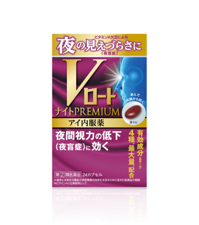 「Vロートナイトプレミアム アイ内服薬」は、そんな足りないビタミンAを補うことで、夜間視力の低下(夜盲症)に効きます。